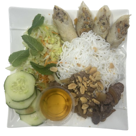 Bo bun aux bœufs et aux nems au poulet.